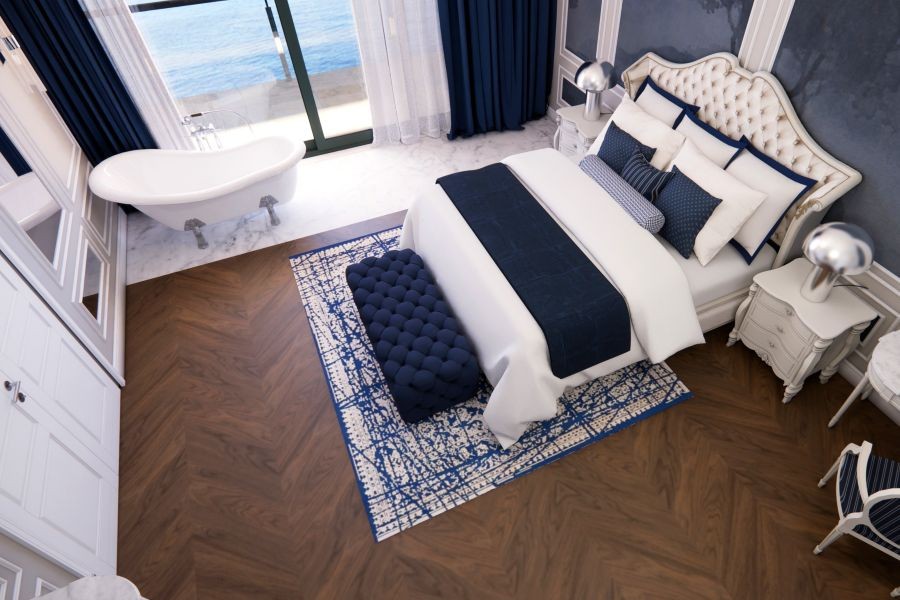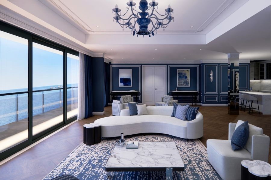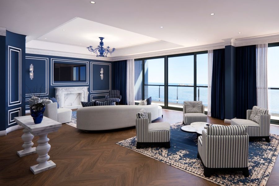 Newly renovated and scheduled to open in early Spring 2026, this top-tier accommodation features two spacious bedrooms, a separate living area, two modern bathrooms with a bathtub and shower, a sauna, a fully equipped kitchen, a dining area, and a sea-view terrace.